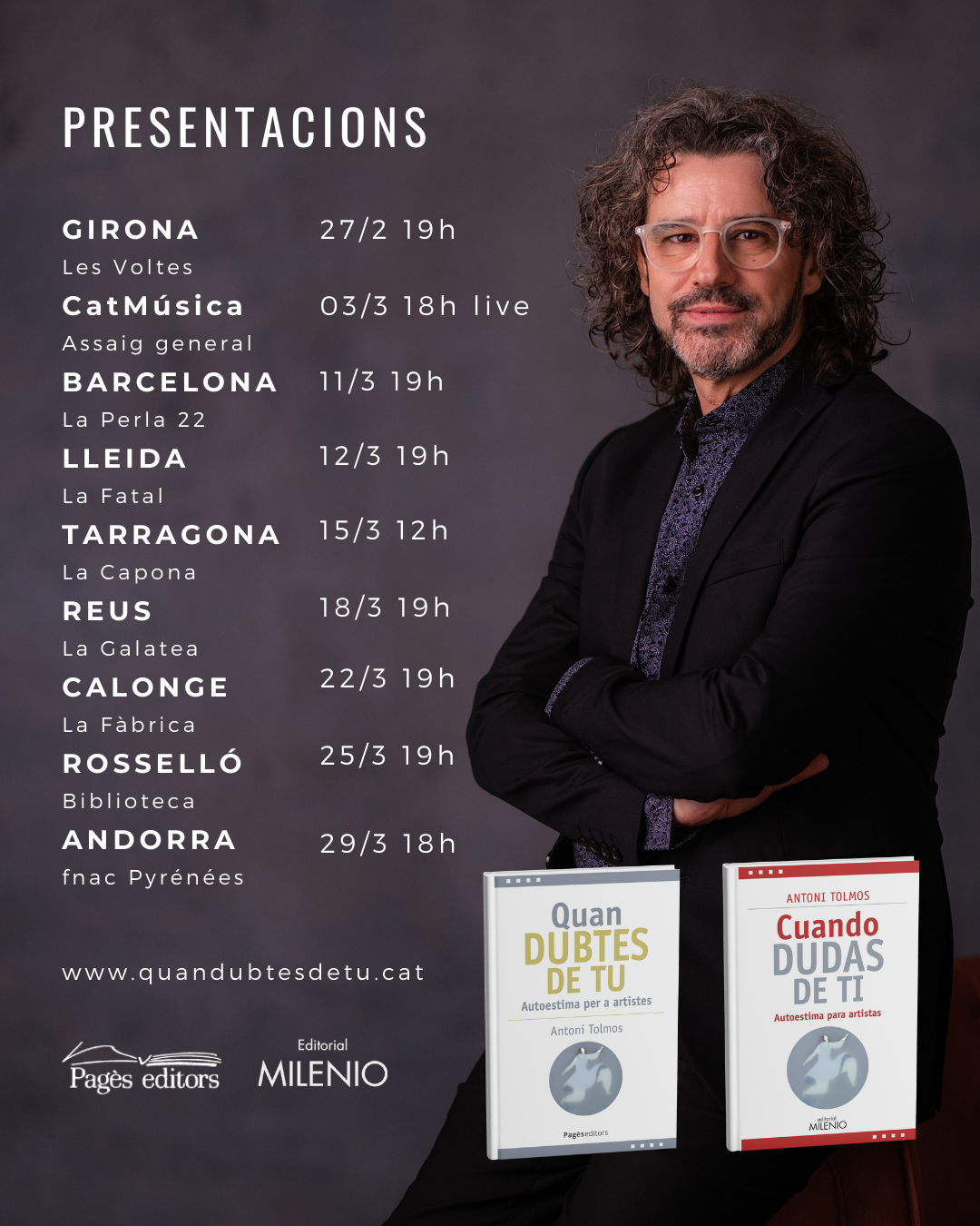 Antoni Tolmos acaba de publicar su 3er libro titulado "CUANDO DUDAS DE TI" en castellano por editorial Milenio.i en catalàn por Pagès Editors. El libro «Cuando dudas de ti» aborda la importancia del autoconocimiento, la autoestima y la gestión emocional en la vida y...
